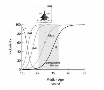 - states with populations under 5.0 million are likely to attain the middle and upper-middle categories at younger median ages than more populous states,